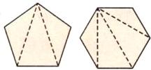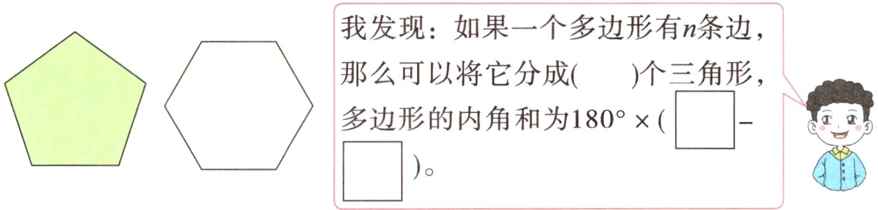 我发现:如果一个多边形有n条边,那么可以将它分成( )个三角形,多边形的内角和为180°×( - )。
