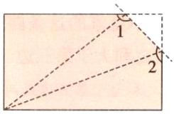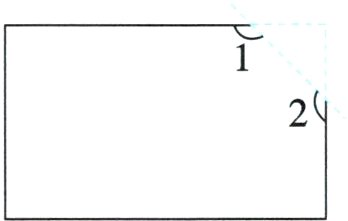 8. 如图,将长方形纸片剪去一个角后得到一个五边形,∠1和∠2的度数和是多少?画一画并计算。
