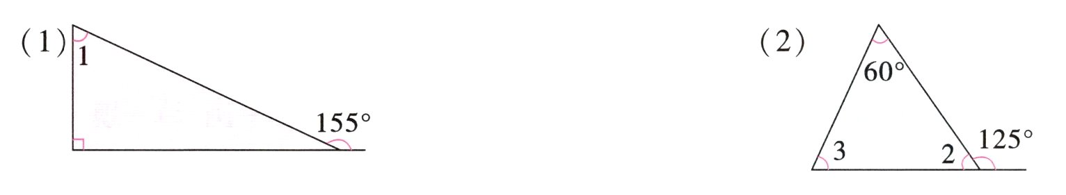(1)∠1 = 180° - 90° - (180° - 155°) = 65°