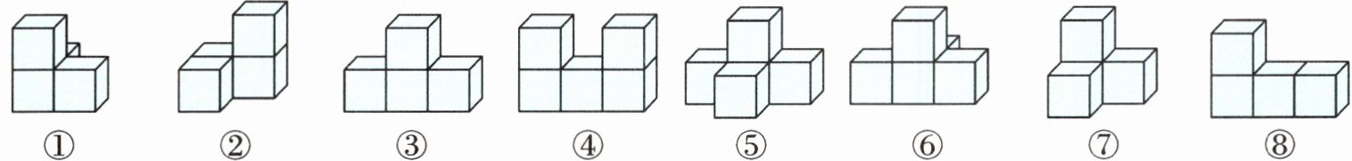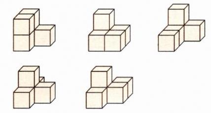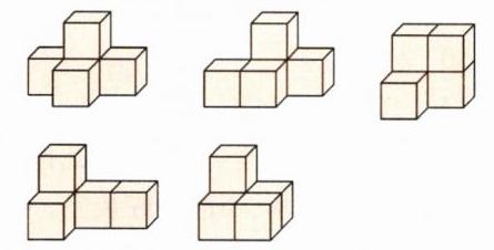 3. 用 4 个同样的小正方体摆成,按下面的要求再添 1 个小正方体,想想各有多少种添法。