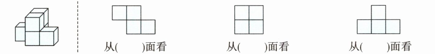 1. 右边的三个图形分别是从什么方向看到的?填一填。(填“正”“左”或“上”)