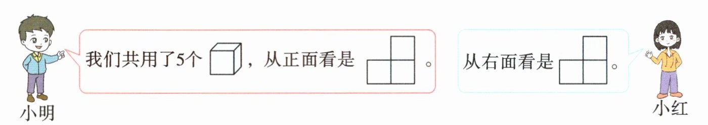 小明 我们共用了5个 ,从正面看是 。 从右面看是 。 小红