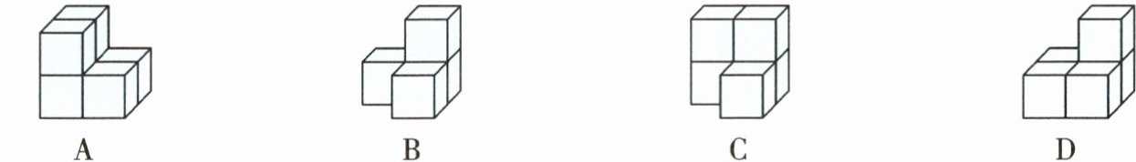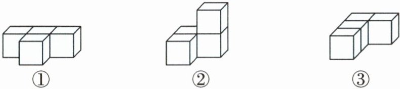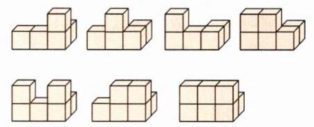 3. 小军用 3 个同样的小正方体摆成,下面是他再摆 1 个同样的小正方体后得到的几何体。