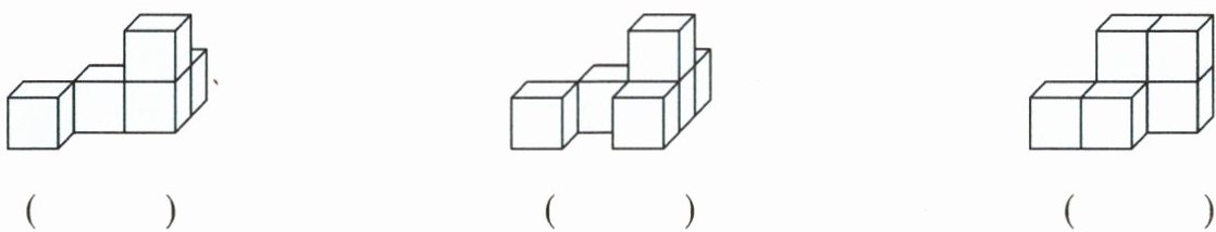 (1)小军摆的( )号几何体与原几何体从正面看到的图形相同。