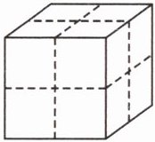 5. 如右下图,一个大正方体的表面积是 96 平方分米,把它沿虚线截成大小相等的 8 个小正方体,这时表面积增加多少平方分米?