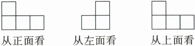 3. 老师用体积是1立方厘米的小正方体拼成一个几何体。从不同角度观察这个几何体所看到的图形如下图所示。这个几何体的体积是多少立方厘米?