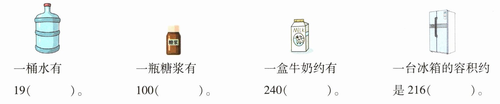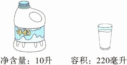 4. 把大桶里面的牛奶全部装入杯子中,至少需要多少个这样的杯子?