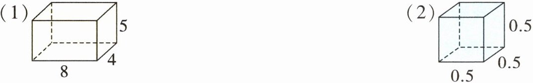 4. 用混凝土浇筑一个无盖的长方体水槽,从外面量,它的长是10分米,宽是8分米,高是5分米。如果混凝土厚1分米,那么这个水槽的容积是多少升?