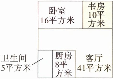 4. 小东家购买了一套新房,平面示意图如下图,书房面积是客厅面积的几分之几?卧室面积是新房总面积的几分之几?
