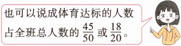 也可以说成体育达标的人数占全班总人数的$\frac{45}{50}$或$\frac{18}{20}$。