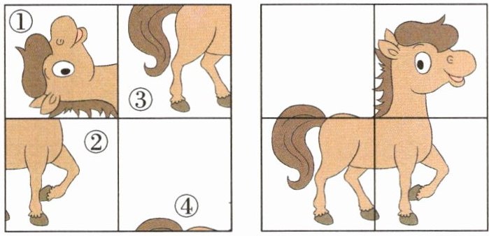 3. 下面左图是被打乱的 4 张图形,怎样才能还原成右图?