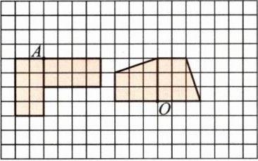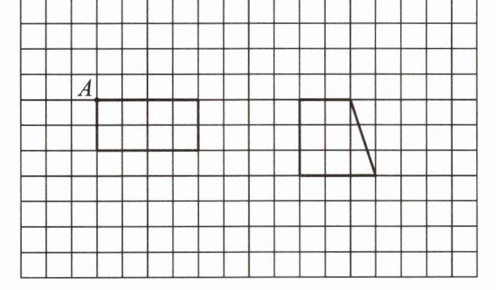 1. 画出长方形绕点 A 顺时针旋转 90°后的图形。先在梯形中任选一个顶点标记为 O,再画出梯形绕点 O 逆时针旋转 90°后的图形。