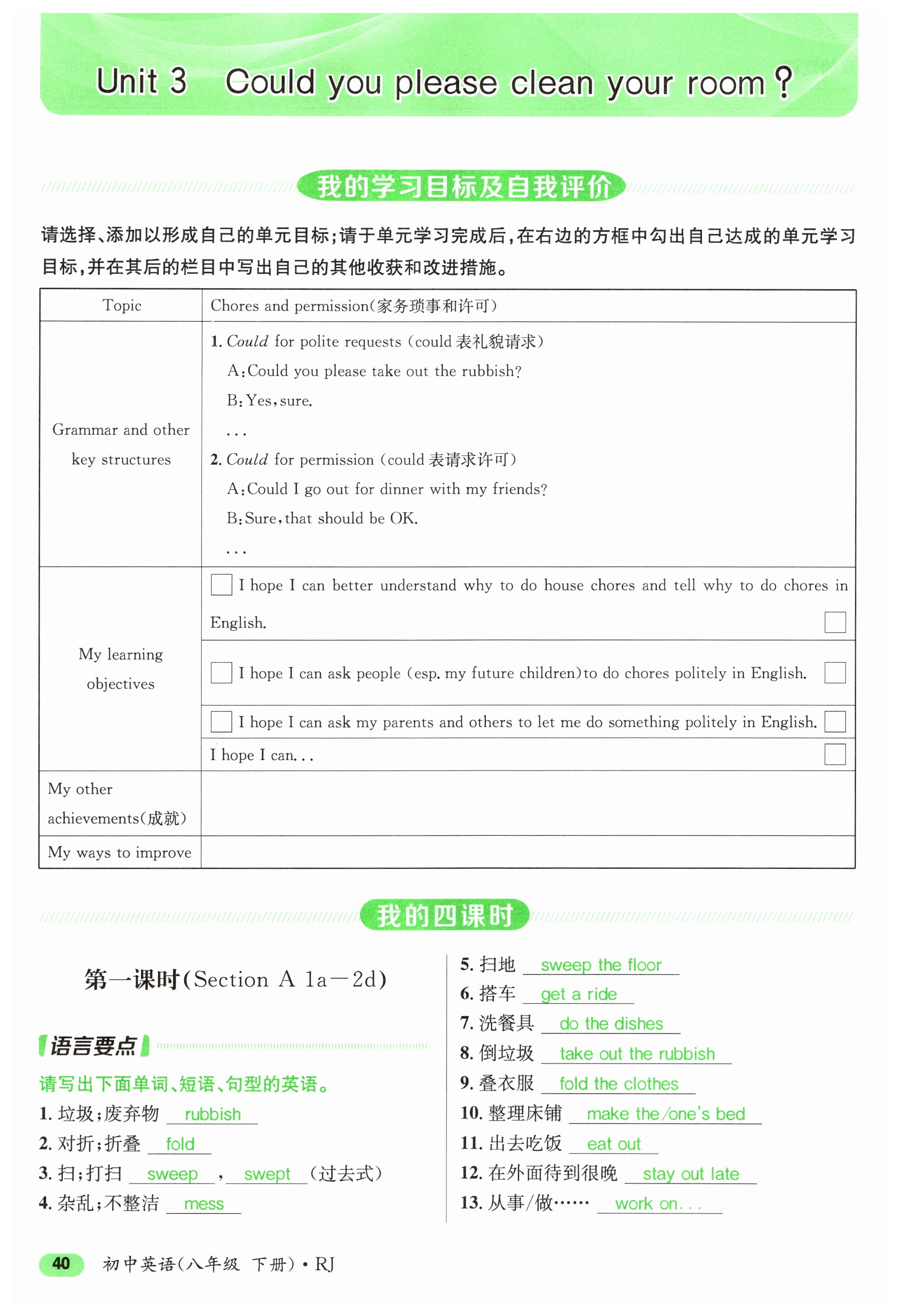 注:目前有些书本章节名称可能整理的还不是很完善,但都是按照顺序排列的,请同学们按照顺序仔细查找。练习册 2025年名校零距离八年级英语下册人教版 答案主要是用来给同学们做完题方便对答案用的,请勿直接抄袭。