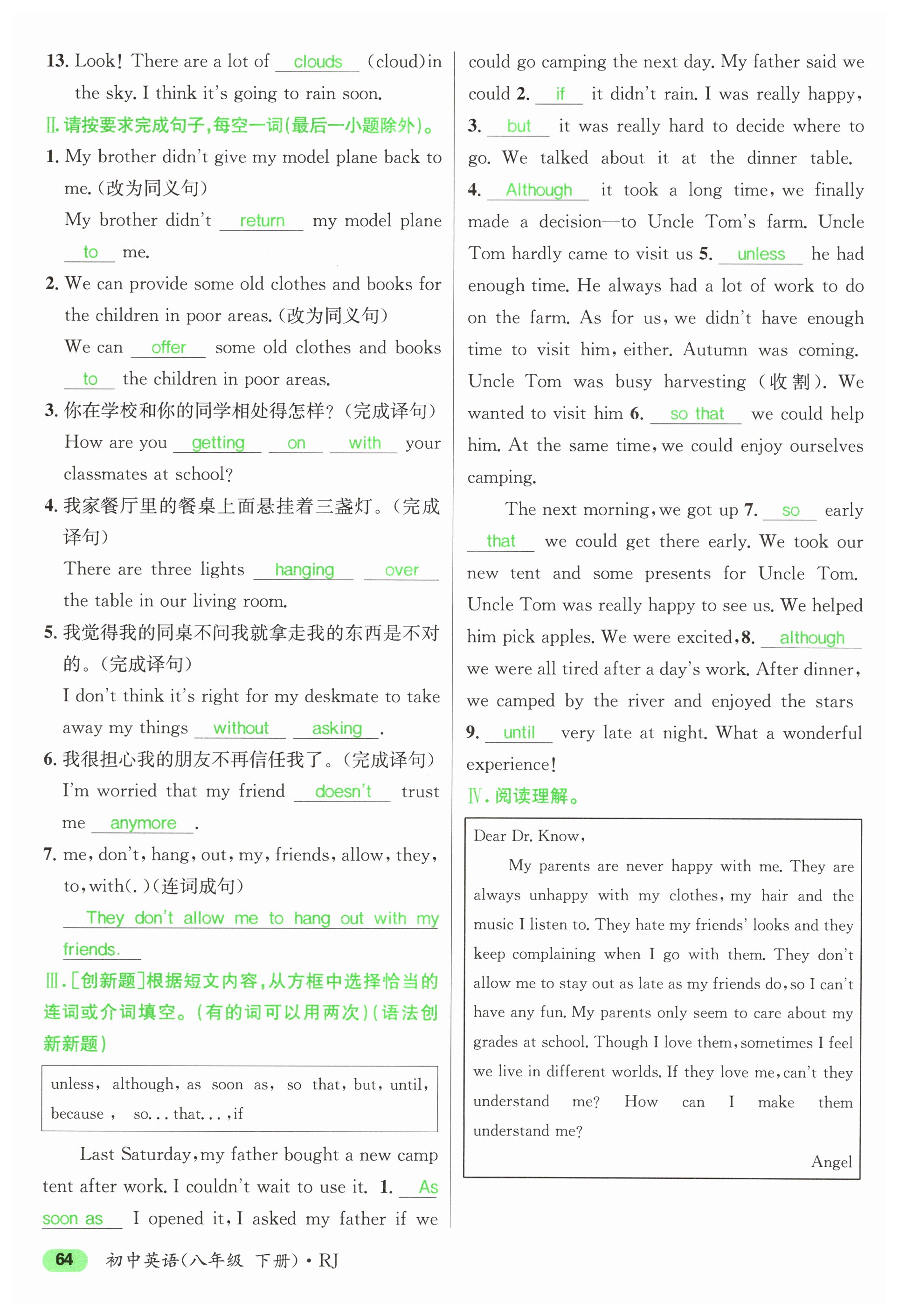 注:目前有些书本章节名称可能整理的还不是很完善,但都是按照顺序排列的,请同学们按照顺序仔细查找。练习册 2025年名校零距离八年级英语下册人教版 答案主要是用来给同学们做完题方便对答案用的,请勿直接抄袭。