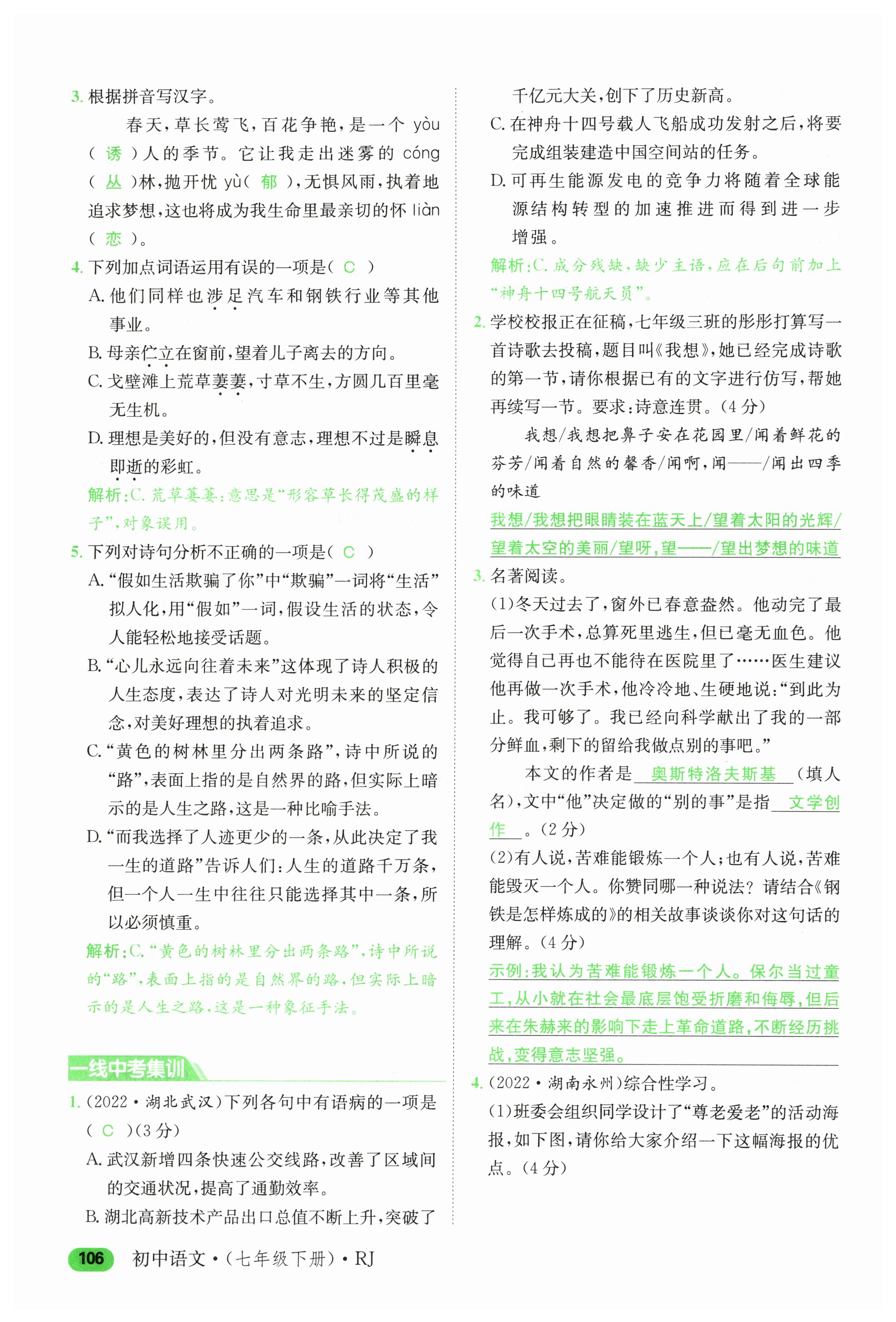 注:目前有些书本章节名称可能整理的还不是很完善,但都是按照顺序排列的,请同学们按照顺序仔细查找。练习册 2025年名校零距离七年级语文下册人教版 答案主要是用来给同学们做完题方便对答案用的,请勿直接抄袭。
