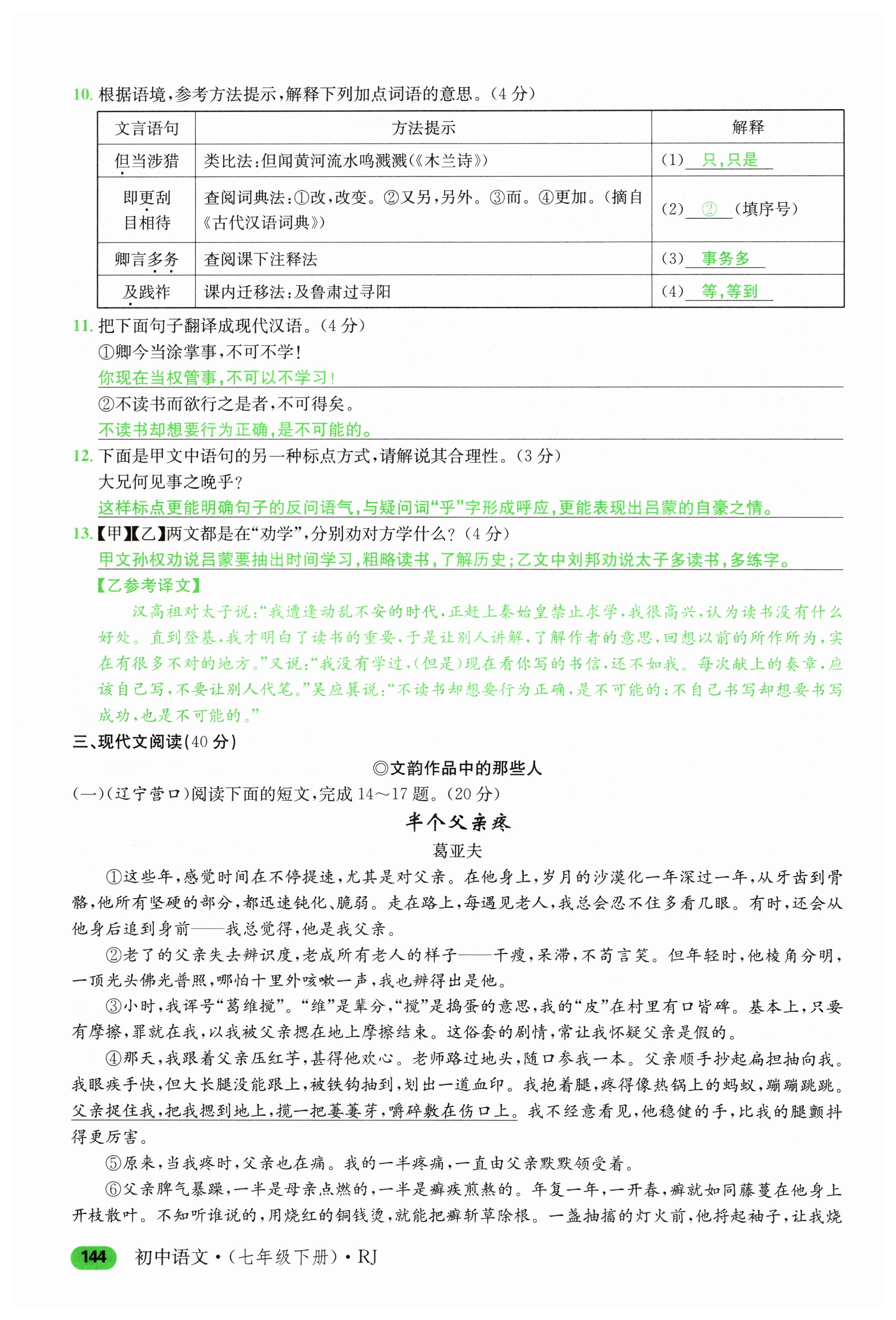 注:目前有些书本章节名称可能整理的还不是很完善,但都是按照顺序排列的,请同学们按照顺序仔细查找。练习册 2025年名校零距离七年级语文下册人教版 答案主要是用来给同学们做完题方便对答案用的,请勿直接抄袭。