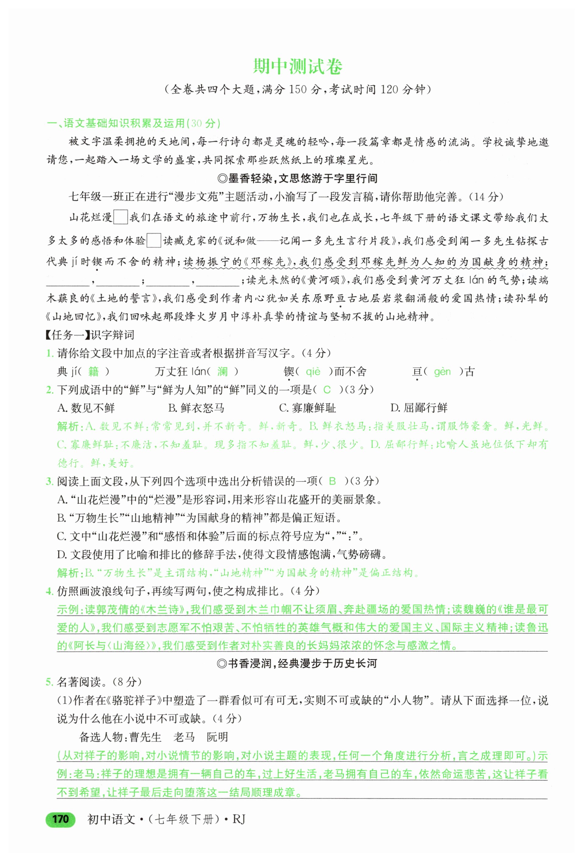 注:目前有些书本章节名称可能整理的还不是很完善,但都是按照顺序排列的,请同学们按照顺序仔细查找。练习册 2025年名校零距离七年级语文下册人教版 答案主要是用来给同学们做完题方便对答案用的,请勿直接抄袭。