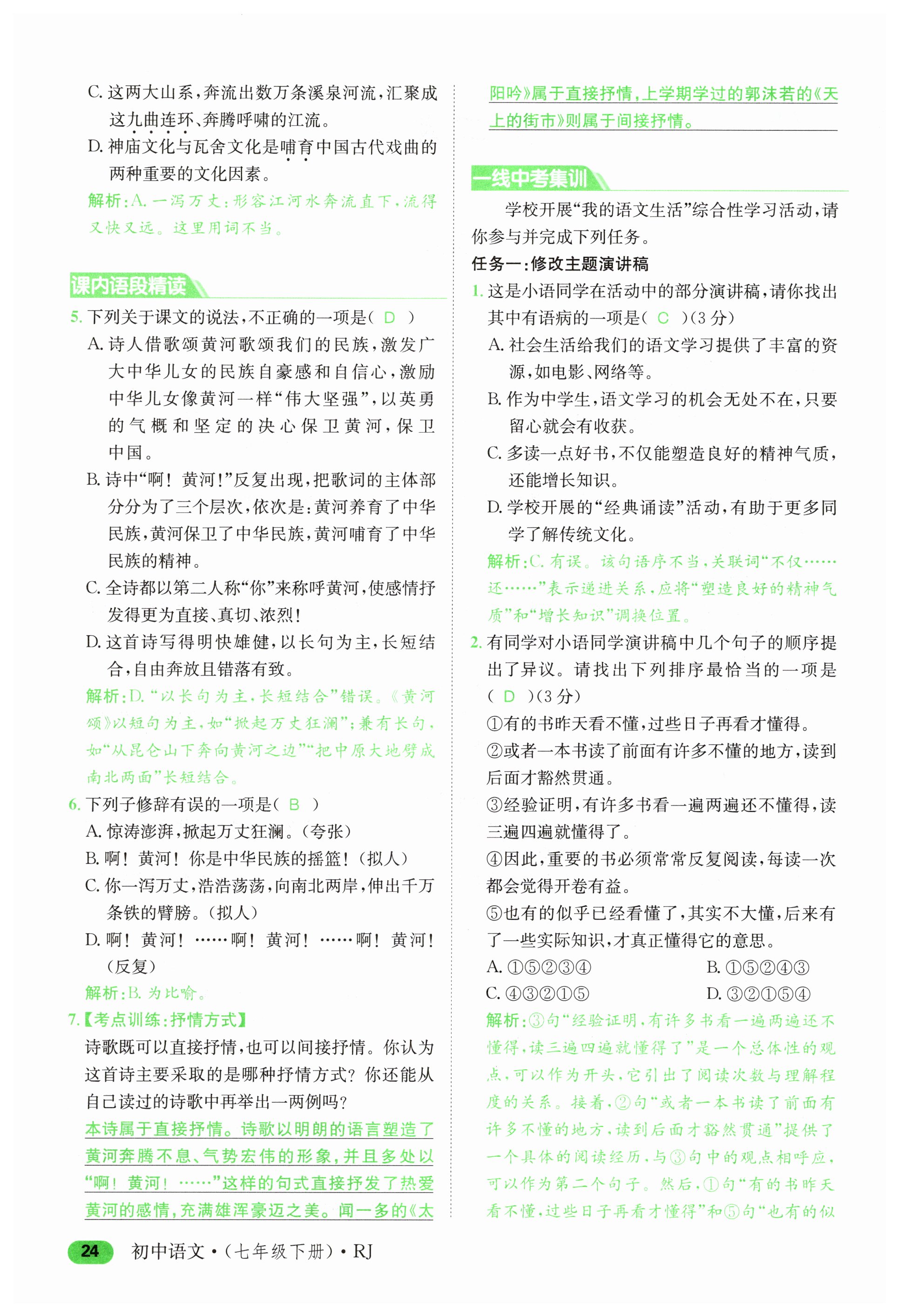 注:目前有些书本章节名称可能整理的还不是很完善,但都是按照顺序排列的,请同学们按照顺序仔细查找。练习册 2025年名校零距离七年级语文下册人教版 答案主要是用来给同学们做完题方便对答案用的,请勿直接抄袭。
