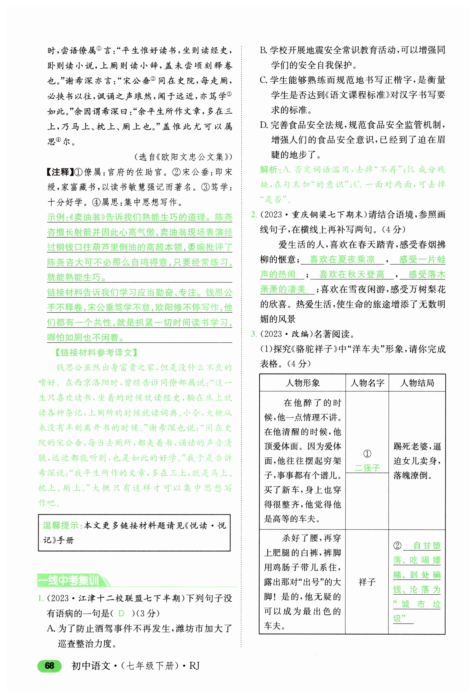 注:目前有些书本章节名称可能整理的还不是很完善,但都是按照顺序排列的,请同学们按照顺序仔细查找。练习册 2025年名校零距离七年级语文下册人教版 答案主要是用来给同学们做完题方便对答案用的,请勿直接抄袭。