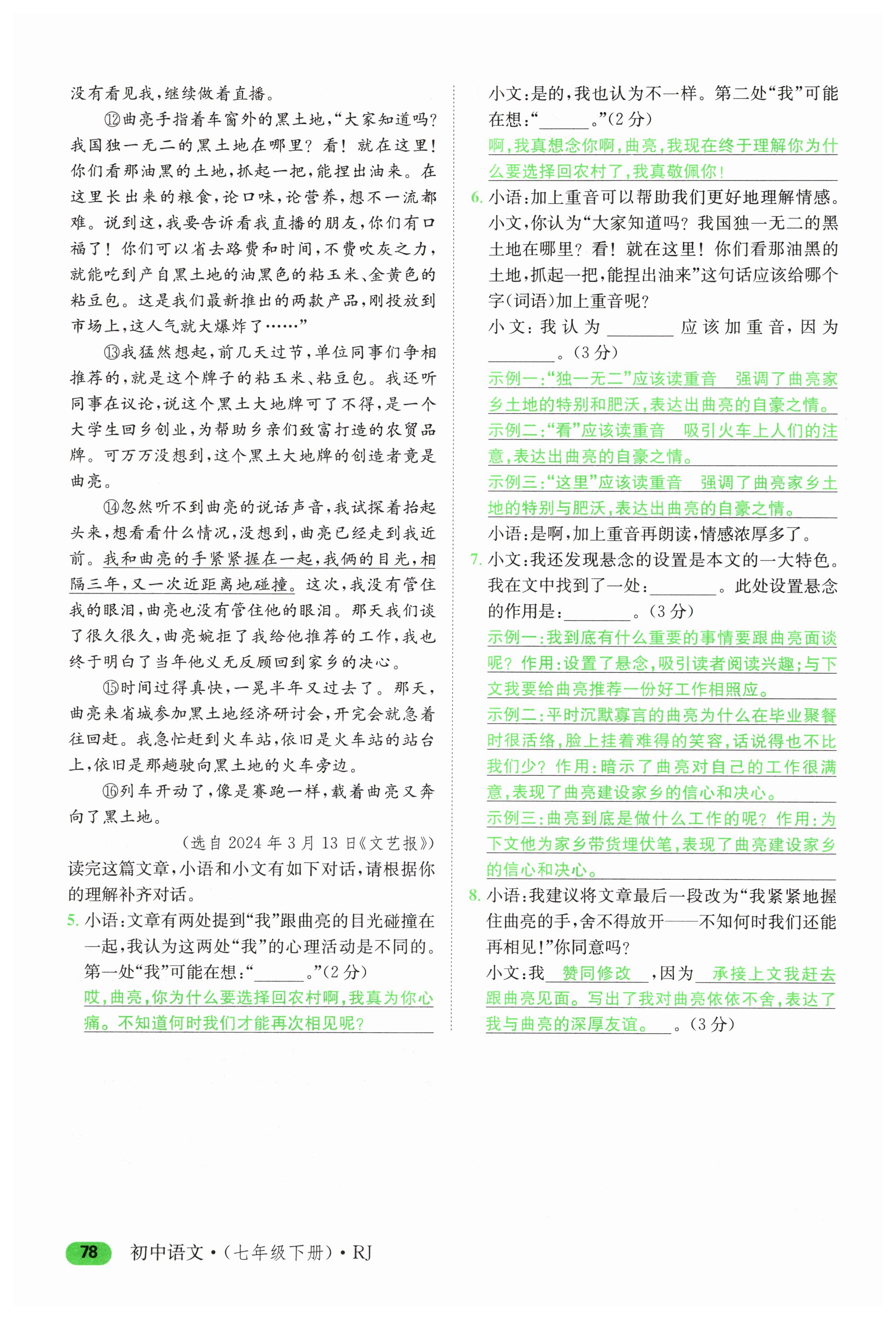 注:目前有些书本章节名称可能整理的还不是很完善,但都是按照顺序排列的,请同学们按照顺序仔细查找。练习册 2025年名校零距离七年级语文下册人教版 答案主要是用来给同学们做完题方便对答案用的,请勿直接抄袭。