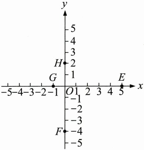 E,F,G,H各点的坐标分别为:E (5, 0),F (0, -4),G (-1, 0),H (0, 2).