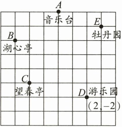 (2)根据(1)中建立的平面直角坐标系,指出其他景点和设施的坐标.