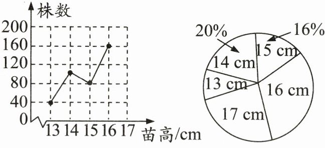 (2)求出样本中苗高为17 cm的秧苗的株数,并完成折线统计图;