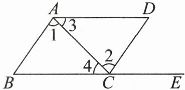A. ∵AD//BC,∴∠3 = ∠4(内错角相等,两直线平行)