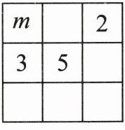 7. 我国的《洛书》中记载着世界上最古老的一个幻方:将1~9这九个数字填入$3\times3$的方格内,使三行、三列、两对角线上的三个数之和都是15,如图所示幻方中,字母$m$所表示的数是 ( )