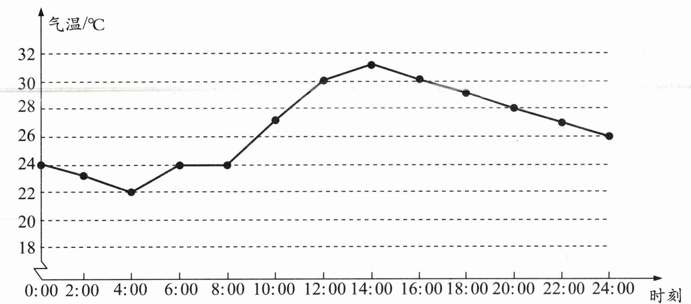 8. 如图是某市6月份某天的气温折线图,下列说法错误的是 ( )