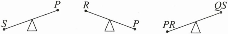 9. 四位小朋友玩跷跷板,他们的体重分别为$P$,$Q$,$R$,$S$,如图,可知他们的体重大小关系是 ( )