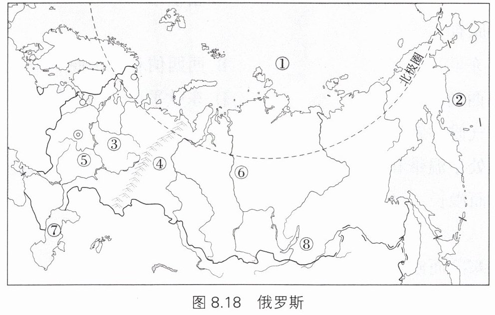 (2)俄罗斯地跨__________洲和__________洲,领土大部分在__________洲,传统上属于__________洲的国家。