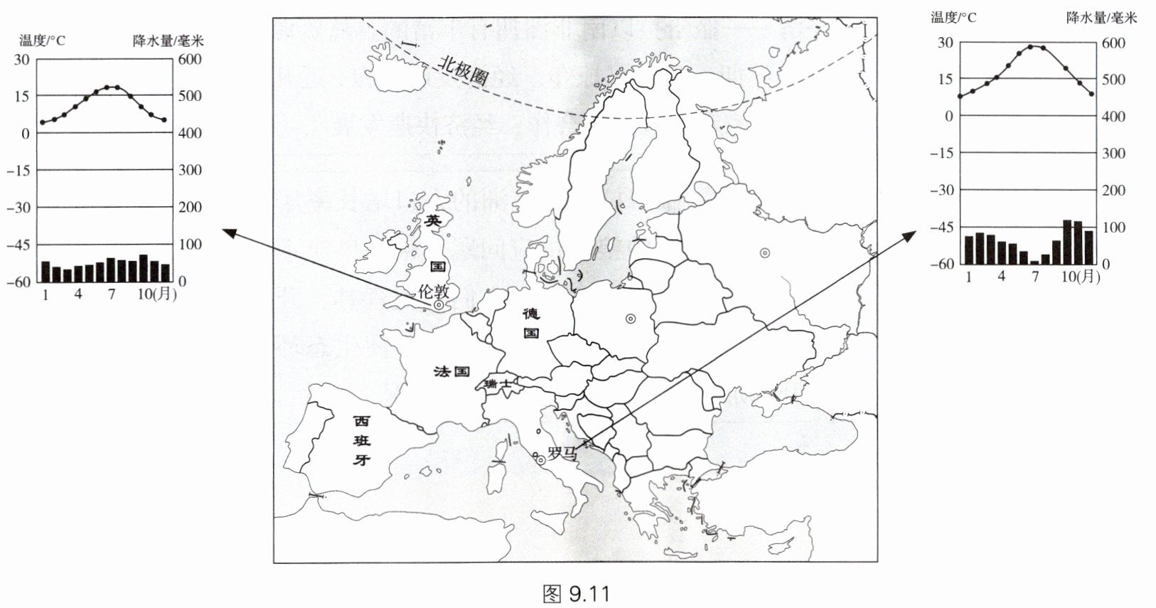 (3)伦敦的气候类型是__________。罗马一年中降水主要集中在__________(“夏”或“冬”)季,其气候类型是__________。
