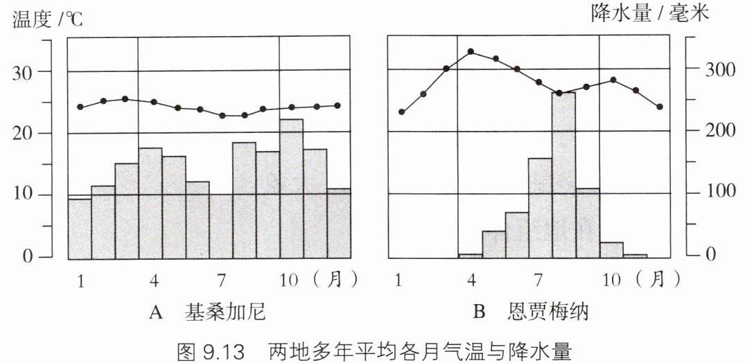 (1)恩贾梅纳月平均气温最高为_______℃,最低为_______℃。