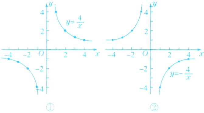 例1 画出反比例函数$y = \frac{4}{x}$和$y = - \frac{4}{x}$的图像.