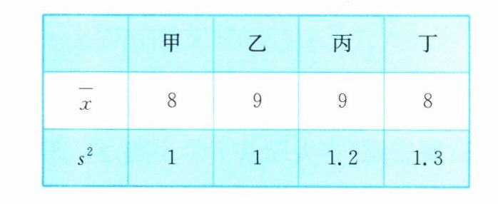 B 解析:因为乙和丙的平均成绩优于甲和丁的平均成绩,所以应从乙和丙中选取一名学生参赛,而乙成绩的方差小于丙成绩的方差,说明乙的成绩较稳定,所以应选乙参赛.