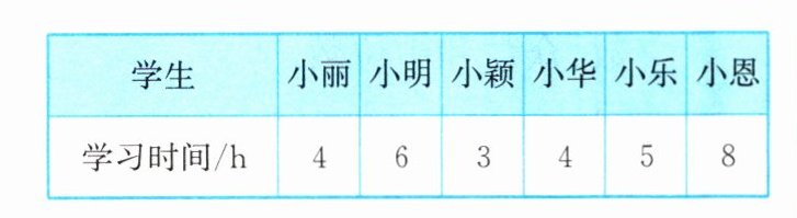 A 解析:把这组数据按由小到大的顺序排列为3,4,4,5,6,8. 因为在这组数据中,出现次数最多的数据是4,所以学习时间的众数是4 h. 因为这组数据共6个,所以第3个与第4个数据的平均数是这组数据的中位数,所以学习时间的中位数是$\frac{4 + 5}{2}=4.5(h)$.