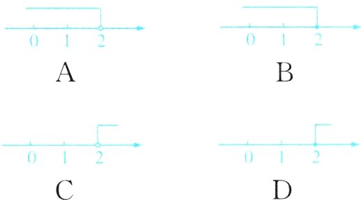 4.在同一直角坐标系中,正比例函数y = 2x的图像与反比例函数y = $\frac{4 - 2k}{x}$的图像没有交点,则实数k的取值范围在数轴上表示为( )