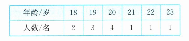 B 解析:从表中可以看出20岁的有4人,出现的次数最多,所以众数为20;其次,按大小排列后,第6个数和第7个数都是20,故这两个数的平均数为20,即中位数是20.