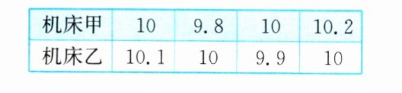 7. 两台机床同时生产直径为10(单位:mm)的零件,为了检验产品质量,质检员从两台机床的产品中各抽出4件进行测量,结果如下: