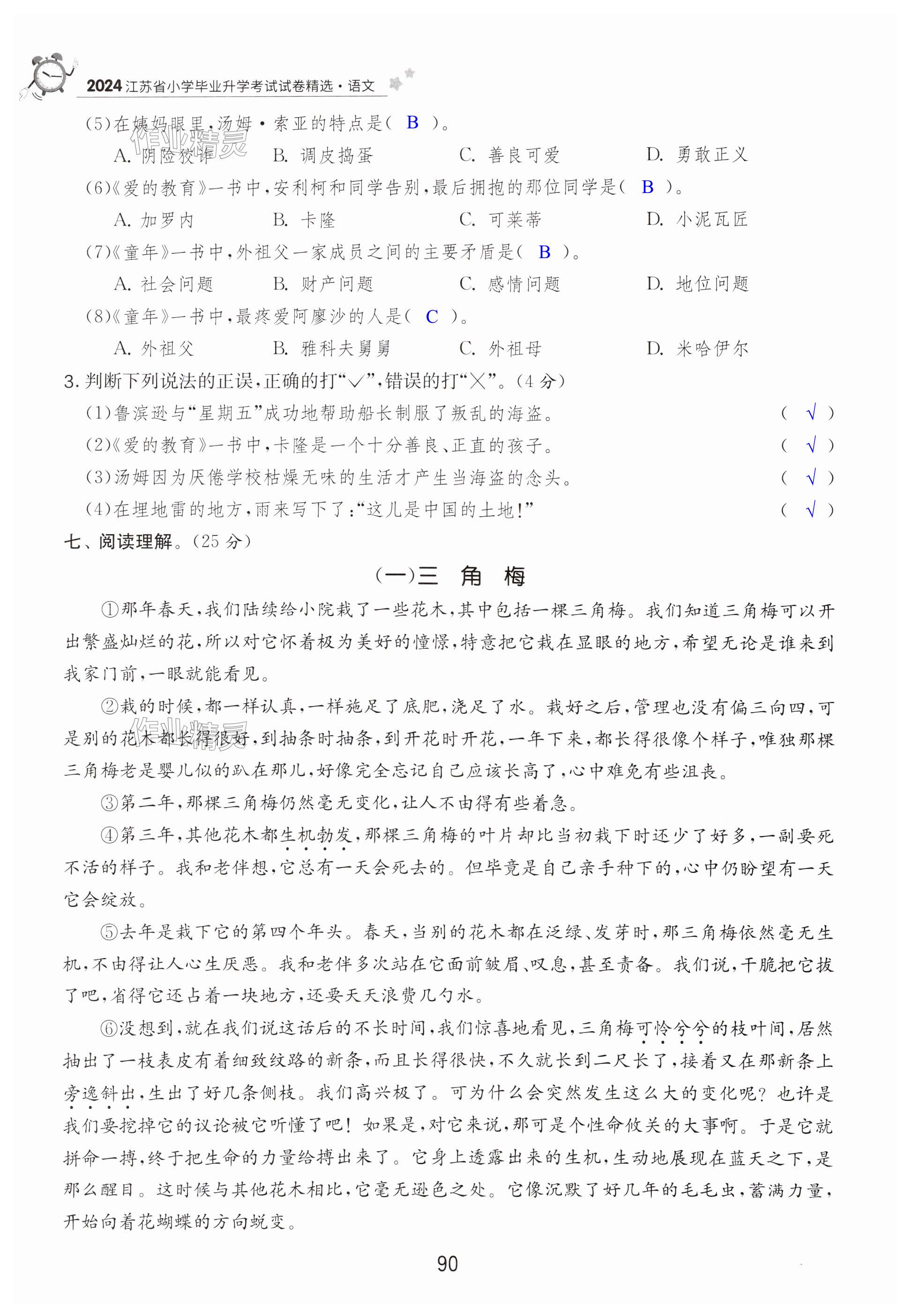 注:目前有些书本章节名称可能整理的还不是很完善,但都是按照顺序排列的,请同学们按照顺序仔细查找。练习册 2025年考必胜小学毕业升学考试试卷精选六年级语文江苏专版 答案主要是用来给同学们做完题方便对答案用的,请勿直接抄袭。