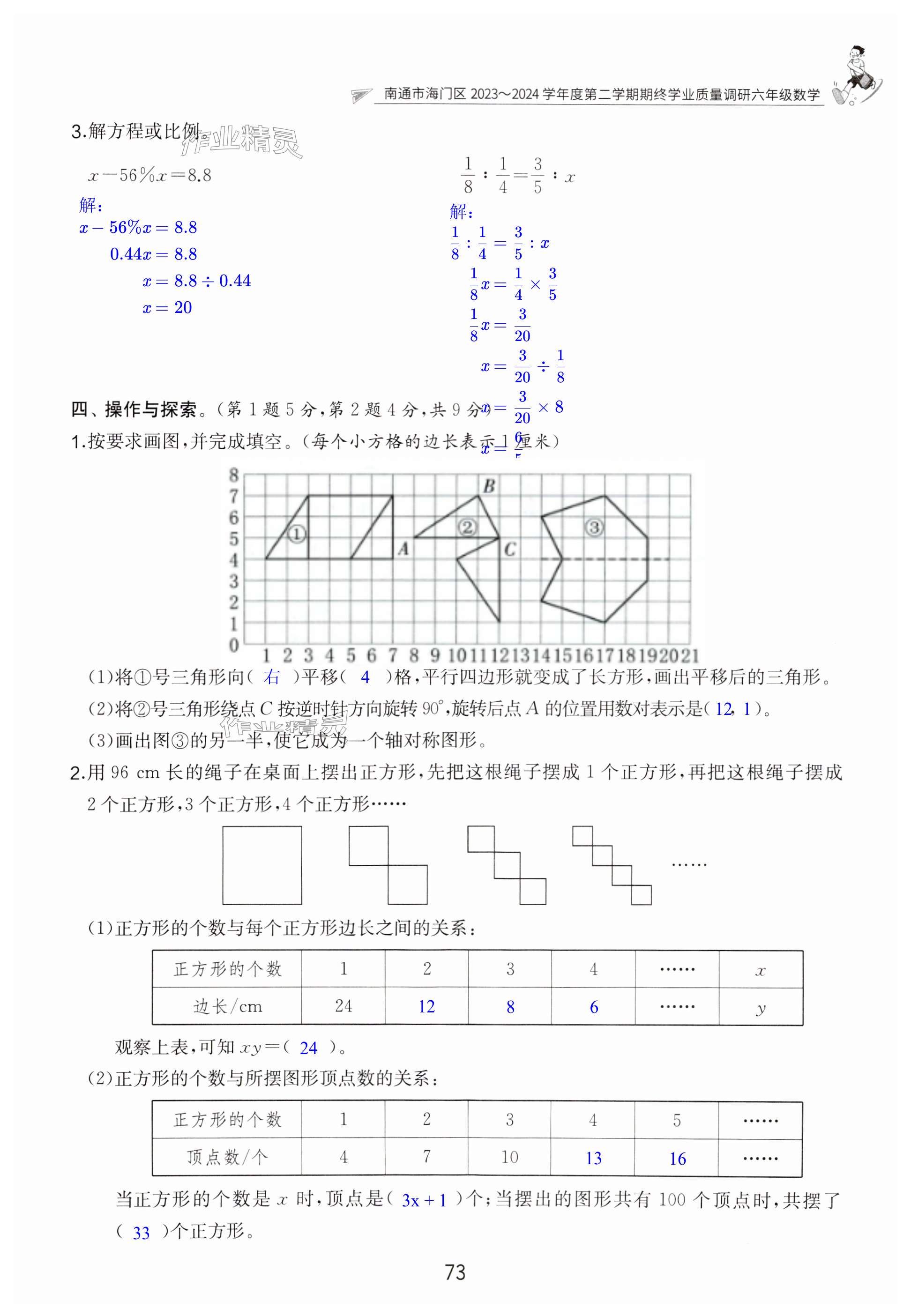 注:目前有些书本章节名称可能整理的还不是很完善,但都是按照顺序排列的,请同学们按照顺序仔细查找。练习册 2025年考必胜小学毕业升学考试试卷精选六年级数学江苏专版 答案主要是用来给同学们做完题方便对答案用的,请勿直接抄袭。
