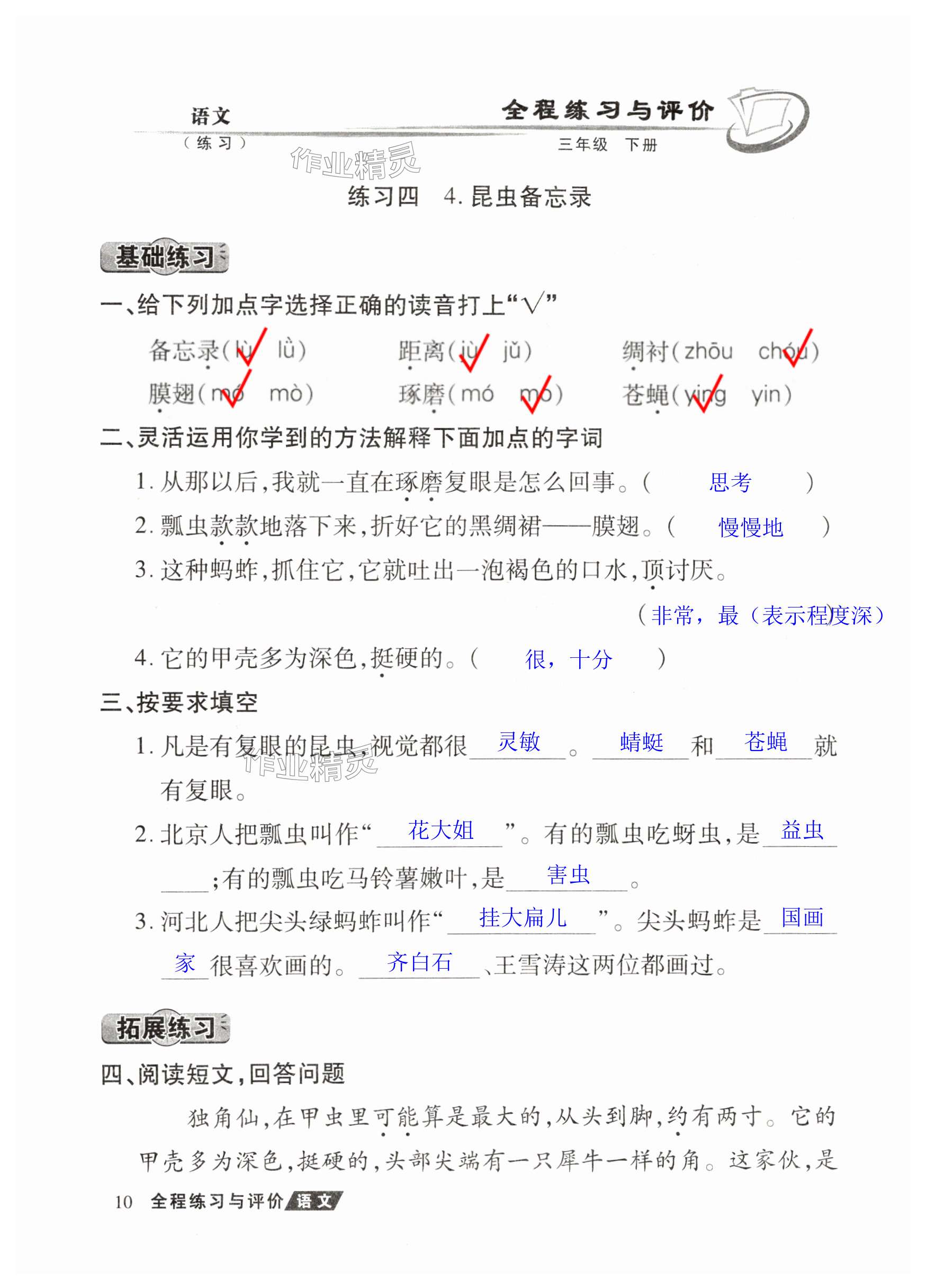 注:目前有些书本章节名称可能整理的还不是很完善,但都是按照顺序排列的,请同学们按照顺序仔细查找。练习册 2025年全程练习与评价三年级语文下册人教版练习版 答案主要是用来给同学们做完题方便对答案用的,请勿直接抄袭。