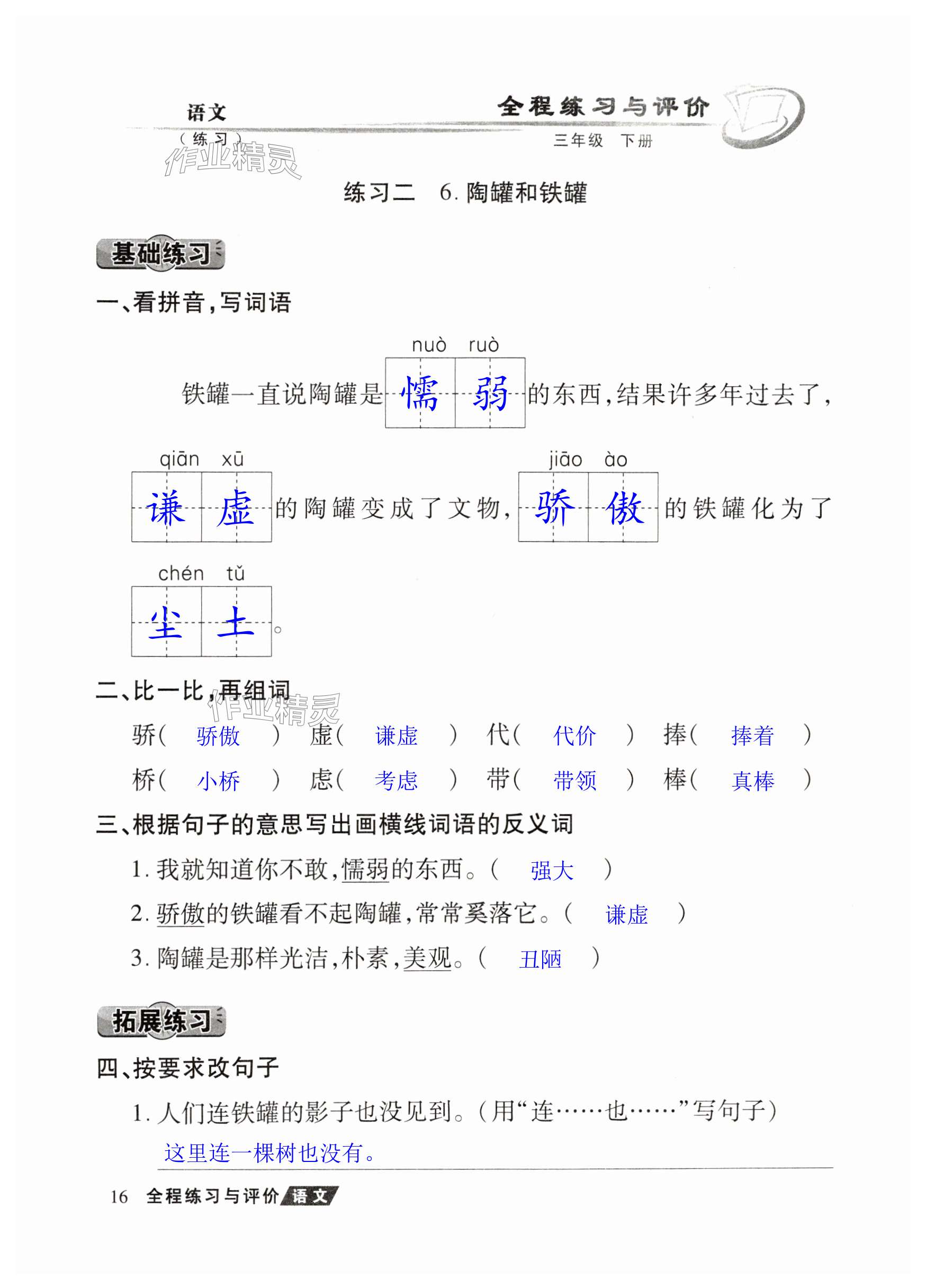 注:目前有些书本章节名称可能整理的还不是很完善,但都是按照顺序排列的,请同学们按照顺序仔细查找。练习册 2025年全程练习与评价三年级语文下册人教版练习版 答案主要是用来给同学们做完题方便对答案用的,请勿直接抄袭。