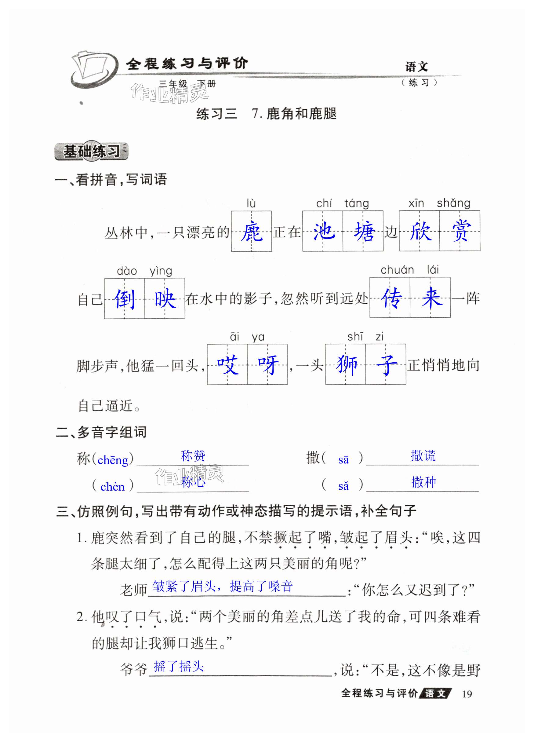 注:目前有些书本章节名称可能整理的还不是很完善,但都是按照顺序排列的,请同学们按照顺序仔细查找。练习册 2025年全程练习与评价三年级语文下册人教版练习版 答案主要是用来给同学们做完题方便对答案用的,请勿直接抄袭。