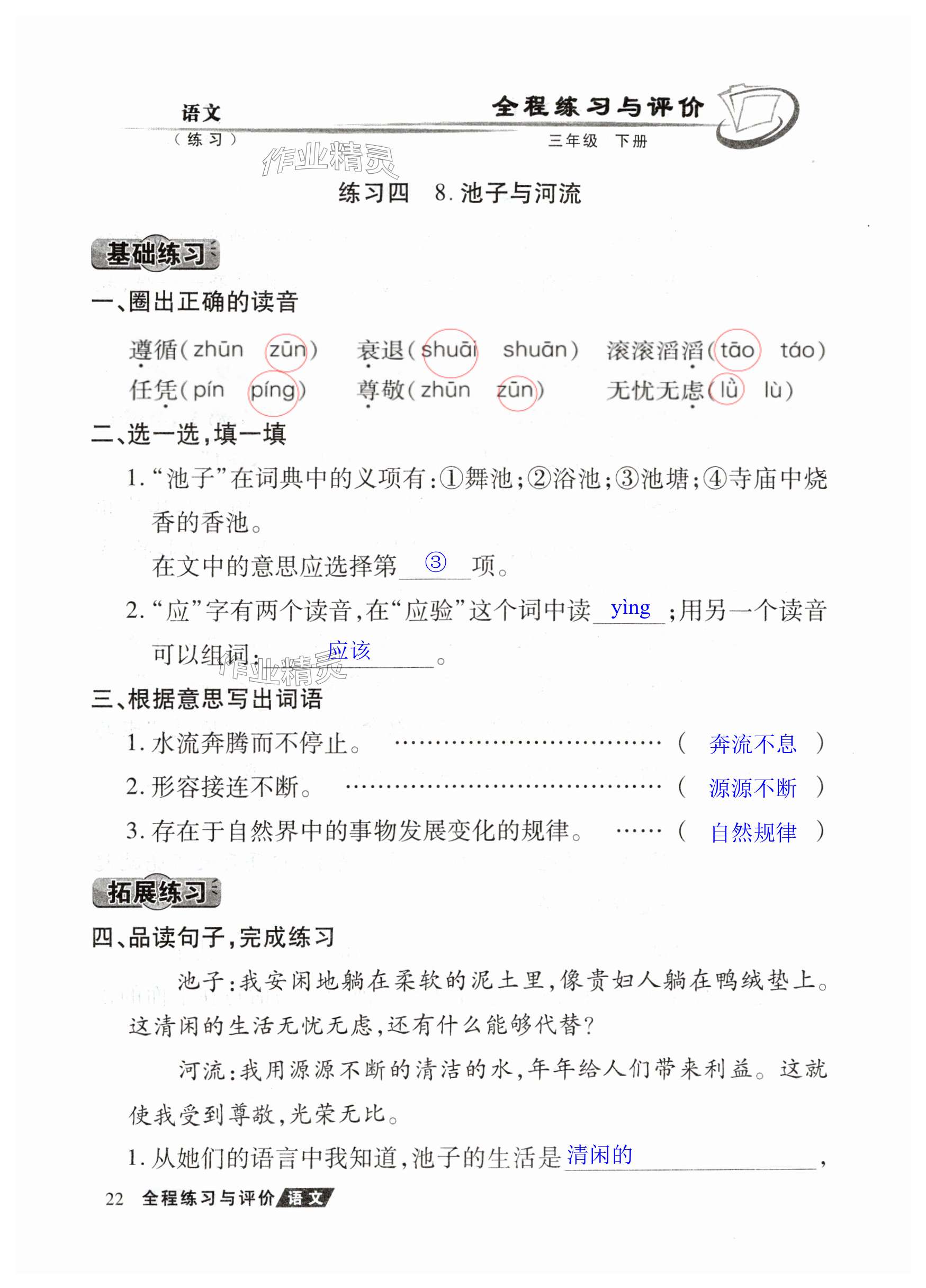 注:目前有些书本章节名称可能整理的还不是很完善,但都是按照顺序排列的,请同学们按照顺序仔细查找。练习册 2025年全程练习与评价三年级语文下册人教版练习版 答案主要是用来给同学们做完题方便对答案用的,请勿直接抄袭。