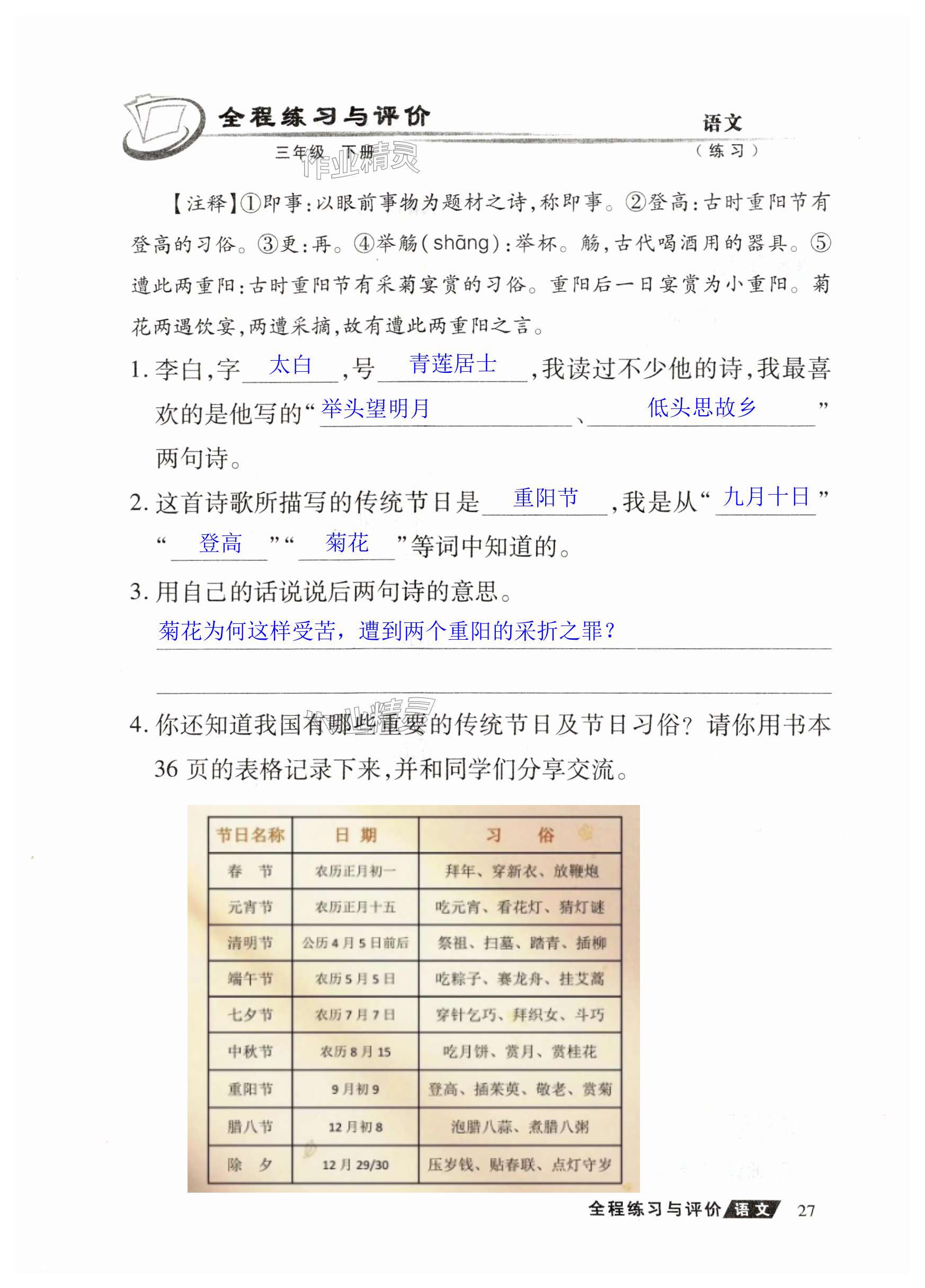 注:目前有些书本章节名称可能整理的还不是很完善,但都是按照顺序排列的,请同学们按照顺序仔细查找。练习册 2025年全程练习与评价三年级语文下册人教版练习版 答案主要是用来给同学们做完题方便对答案用的,请勿直接抄袭。
