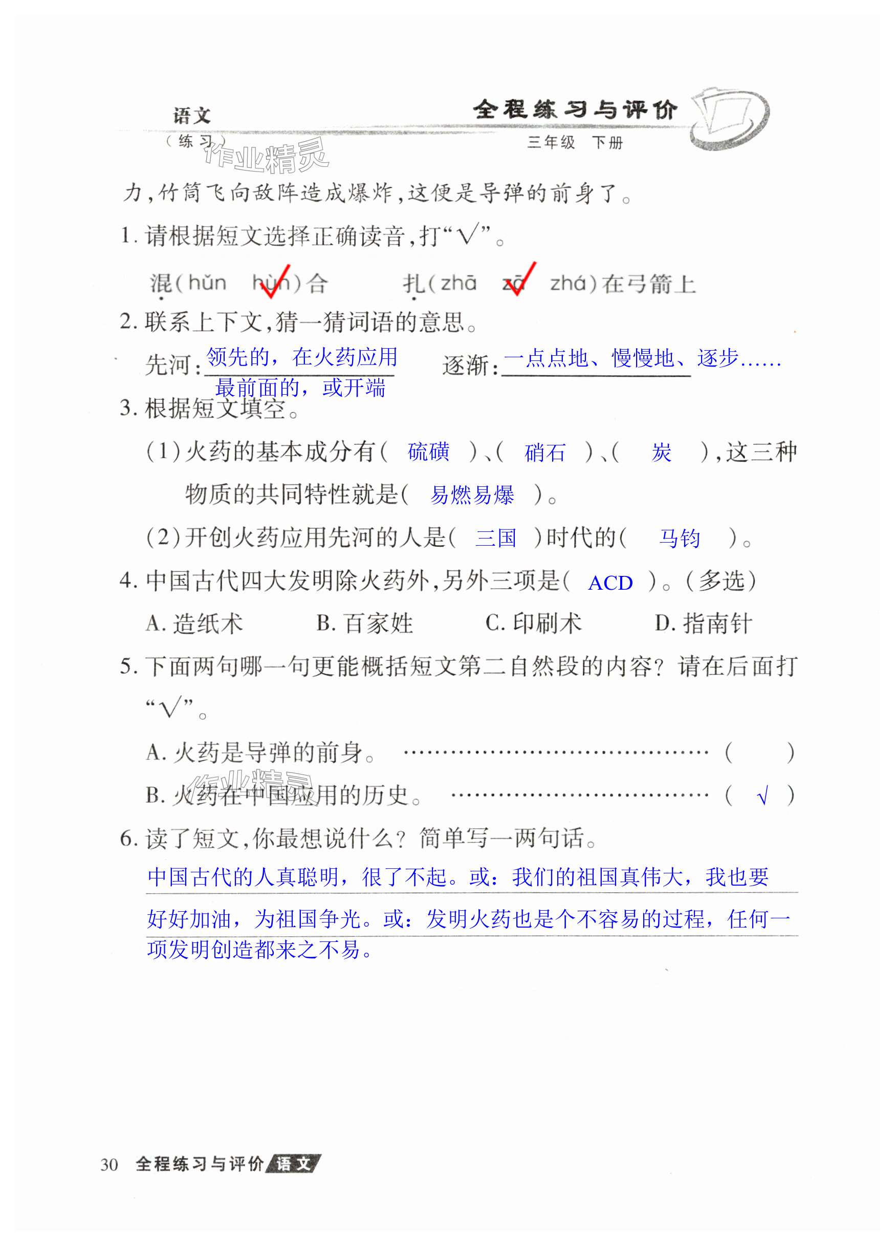 注:目前有些书本章节名称可能整理的还不是很完善,但都是按照顺序排列的,请同学们按照顺序仔细查找。练习册 2025年全程练习与评价三年级语文下册人教版练习版 答案主要是用来给同学们做完题方便对答案用的,请勿直接抄袭。