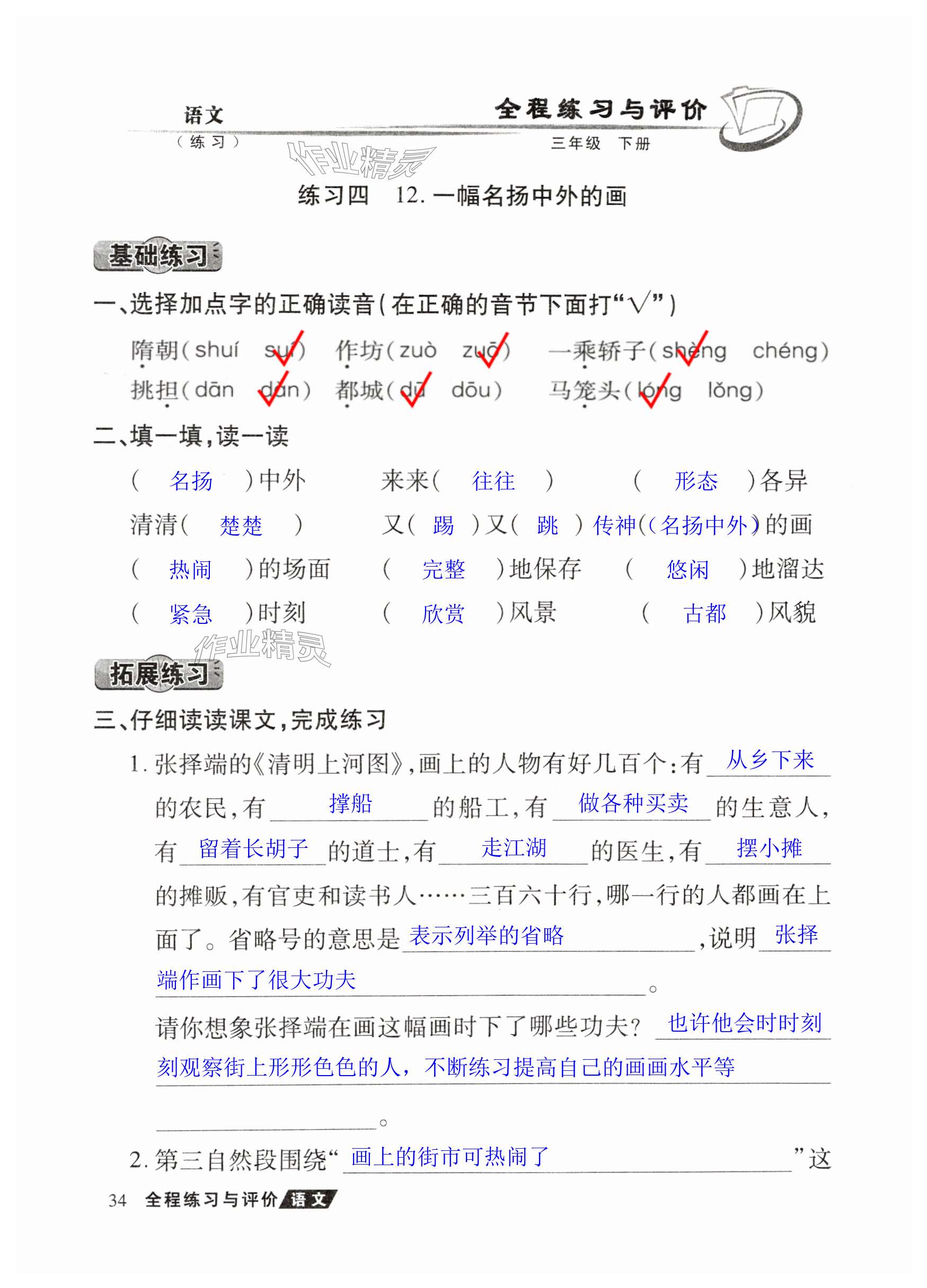 注:目前有些书本章节名称可能整理的还不是很完善,但都是按照顺序排列的,请同学们按照顺序仔细查找。练习册 2025年全程练习与评价三年级语文下册人教版练习版 答案主要是用来给同学们做完题方便对答案用的,请勿直接抄袭。