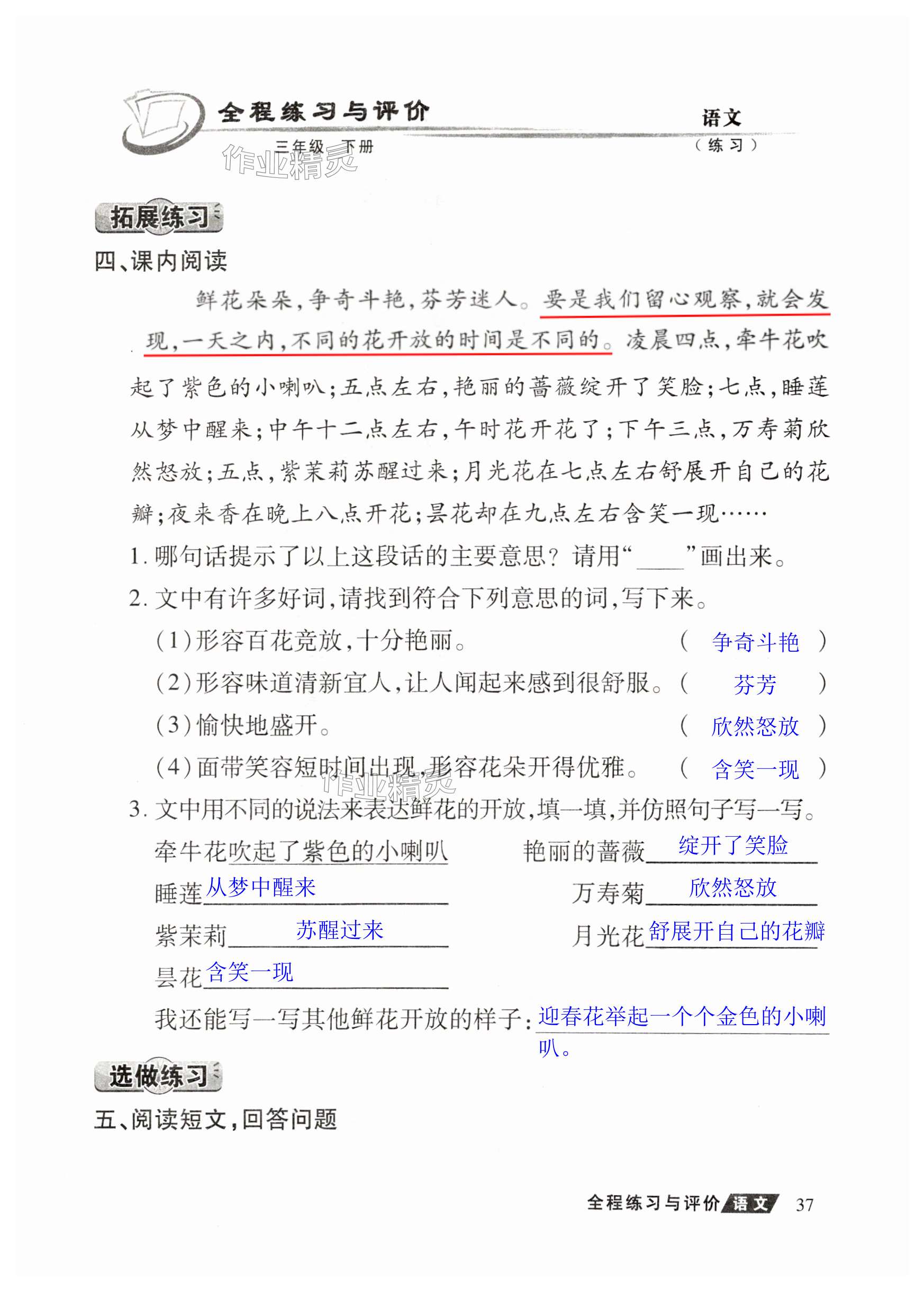 注:目前有些书本章节名称可能整理的还不是很完善,但都是按照顺序排列的,请同学们按照顺序仔细查找。练习册 2025年全程练习与评价三年级语文下册人教版练习版 答案主要是用来给同学们做完题方便对答案用的,请勿直接抄袭。